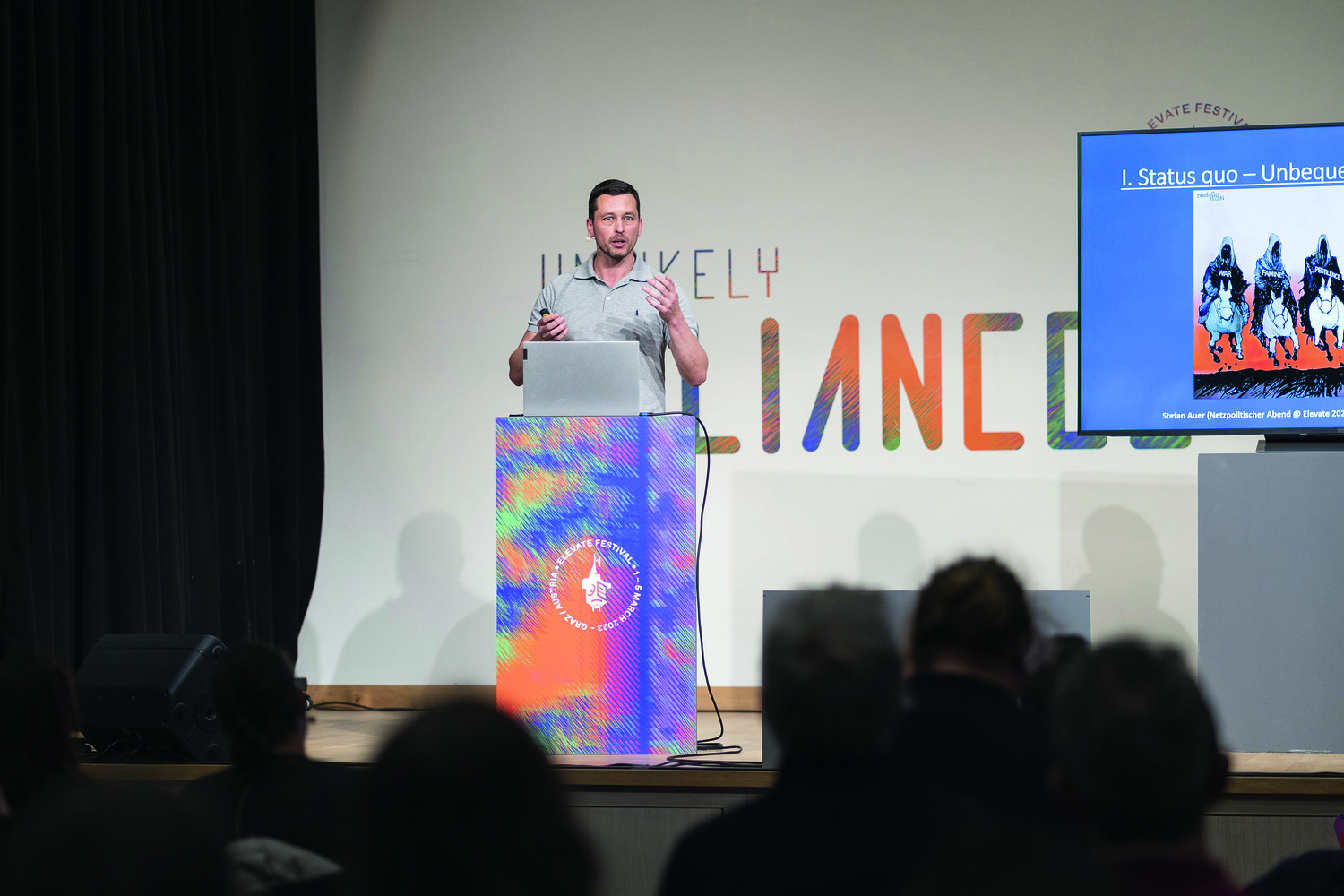 Ko-Organisator und -Moderator Martin Hochegger von der Katholischen Arbeitnehmer:innenbewegung Steiermark wies zum Abschluss der Vorträge auf die Komplexität und Vielschichtigkeit unserer Zeitgeschichte hin und forderte Wachsamkeit gegenüber „klugen Rechten“, die die Suche nach Identität für antidemokratische Zwecke missbrauchten.