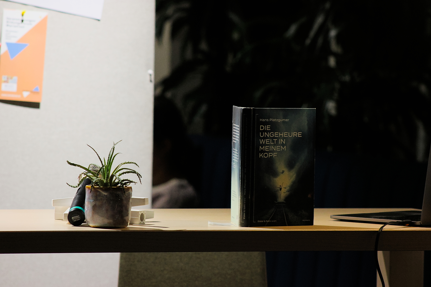 In seiner "fest im Boden" der Lebenswelt verankerten, mit McCoy Tyner musikalisch aufgejazzten und mitreißenden Lesung ließ Platzgumer die Gäste im Cafè Famoos im Unicorn der Uni Graz atmosphärisch tief in seinen gut getakteten "Taxler- und Kafkaroman", der laut dem Autor auch eine "Art Verhör" ist, eintauchen.