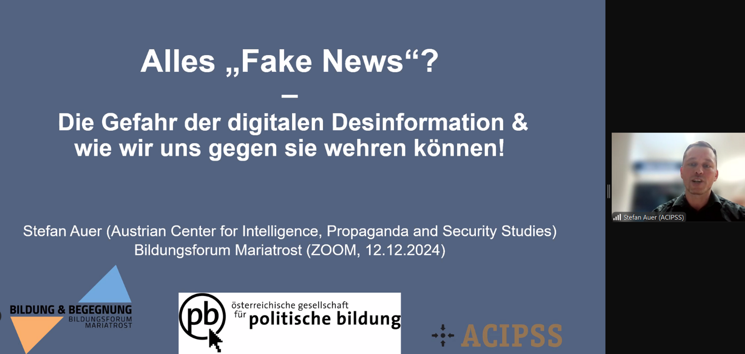 Diesen Fragen stellte sich Stefan Auer, Forscher beim Austrian Center for Intelligence, Propaganda and Security Studies (ACIPSS) und Leiter des Sicherheitsinformationszentrums (SINFO) in Graz im Rahmen unseres Webinars Alles „Fake News“? – Die Gefahr der digitalen Desinformation, gefördert von der Österreichischen Gesellschaft für Politische Bildung. Moderator Florian Traussnig zitierte einführend aus dem Buch Fake News machen Geschichte, in dem steht, dass „sachlich falsche Nachrichten über politische Zusammenhänge […] zu einem politischen Ereignis führen“ können – dieses Ereignis, so Traussnig, sei, überspitzt gesagt, die Krise der Demokratie. Letzterer sei eine Erkenntnis- und Medienkrise vorgelagert.